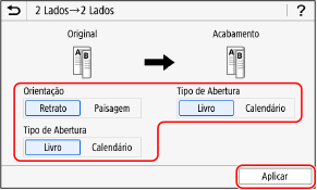 3 | Defina a orientação e o tipo de abertura e pressione [Aplicar]. A tela [Outras Configurações] reaparece. |