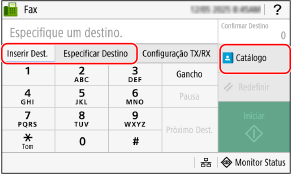 Especifique o destino na guia [Inserir Dest.], guia [Especificar Destino] ou [Catálogo].