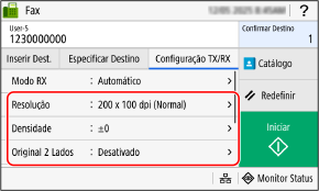 Na guia [Configuração TX/RX], defina as configurações de digitalização de originais.
