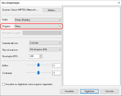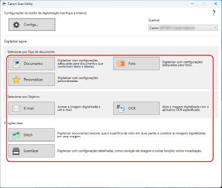 Selecione o driver de scanner (ScanGear MF ou WIA) da máquina e defina as configurações de digitalização.