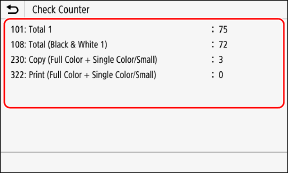 You can display a counter showing the total number of pages copied and printed to date by black & white and color.