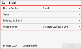 Você pode registrar destinos no catálogo de endereços usando o painel de controle.