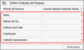 Selecione [Método de Pesquisa] e selecione as condições de pesquisa.