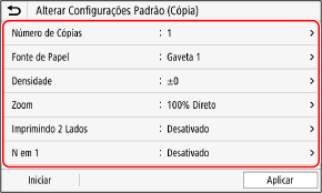 Você pode alterar as configurações padrão de digitalização, cópia e outras funções acessadas no painel de controle.