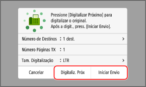 Para digitalizar originais adicionais, coloque-os na placa de vidro e pressione [Digitaliz. Próx].