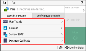 Ao enviar, se o destino de envio for restrito devido às Configurações de Autenticação da Função de Envio, você não poderá especificar outro destino. Para obter detalhes, entre em contato com o administrador.