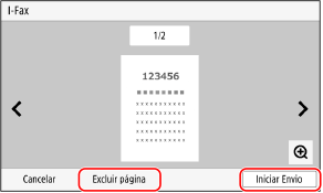 Se houver páginas que você não deseja enviar, abra a página e pressione [Excluir página].