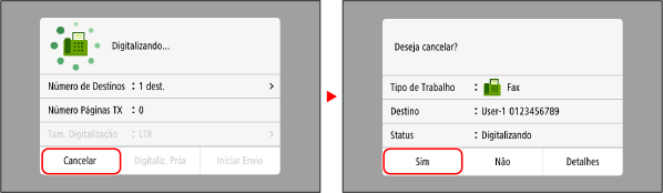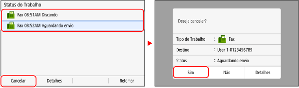 Se uma tela de lista de trabalhos for exibida, selecione o trabalho a ser cancelado e pressione [Cancelar]