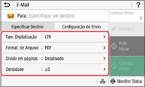 Defina as configurações de digitalização na guia [Configuração de Envio]. Configurações de Digitalização