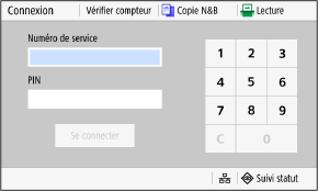 Lorsque la gestion par ID de service est configurée, l'écran de connexion suivant s'affiche. Saisissez l'ID du service pour vous connecter. Si un code PIN est paramétré, saisissez-le.