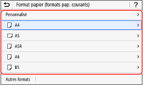 Appuyez sur [Autres formats], et sélectionnez le format de papier dans la liste affichée.