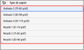 Sélectionnez le type de papier chargé dans le tiroir à papier.