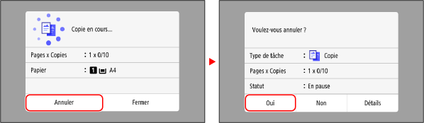 Suivez les instructions à l'écran pour annuler une opération de copie.