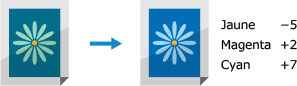 Vous pouvez ajuster les niveaux de jaune, magenta, cyan et noir pour copier avec des couleurs plus fidèles à l'original ou plus claires que l'original.