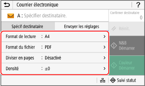 Configurez les paramètres de numérisation dans l'onglet [Envoyer les réglages].
