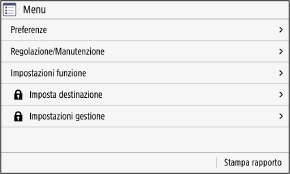 Questa schermata viene visualizzata quando si preme [Menu] nella schermata [Schermata princip.]. Utilizzare questa schermata per configurare le varie impostazioni della macchina.