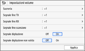 [Suoneria], [Segnale fine TX], [Segnale fine RX], [Segnale fine scansione] (per modelli con una funzione fax)