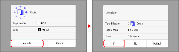 Seguire le istruzioni che appaiono a video per annullare un’operazione di copia.