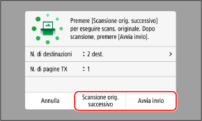 Per continuare a scansionare gli originali, posizionarli sul vetro di lettura e premere [Scansione orig. successivo].