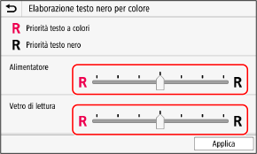 In [Alimentatore] o [Vetro di lettura], eseguire la regolazione dando priorità alla riproduzione del testo colorato o del testo nero.