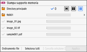 Schermata per la selezione dei file nel dispositivo di memoria USB