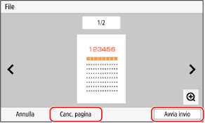 Se vi sono pagine che non si desidera inviare, aprirle e premere [Canc. pagina].