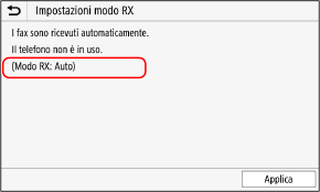 Una volta comparso il messaggio [Impostazioni configurate.], viene visualizzata la schermata [Impostazioni modo RX].