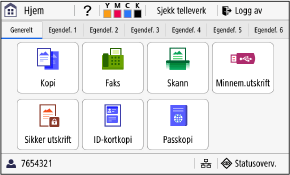 ![]() | Snarveiknapp (kopier) Hent inn kopiinnstillinger registrert som favorittinnstillinger. Navnet på knappen varierer etter innstilling. Legge til snarveiknapper |