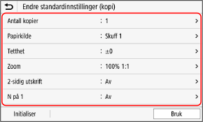 Gjenopprette standardinnstillinger til standard fra fabrikkPå skjermbildet i trinn 4, trykker du på [Initialiser]  [Ja]. |
