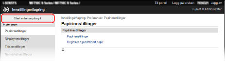 Hvis du utfører endringer på maskinen, kan det hende du må starte den på nytt for at endringene iverksettes, avhengig av innstilling.