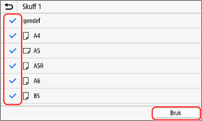Merk av i boksene for hvilke papirformat som skal skjules, og klikk på [Bruk].