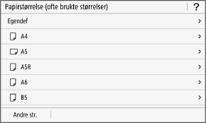 Når papiret ligger i liggende papirretning, velger du [A5]. Når papiret ligger i stående papirretning, velger du [A5R].