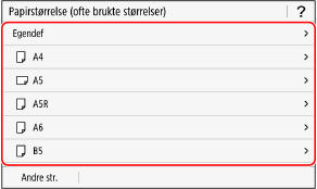 Trykk på [Andre str.] og velg papirformat fra listen som vises.