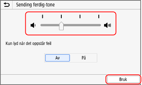 Dra glidebryteren til venstre eller høyre når du vil justere volumet, og trykk på [Bruk].