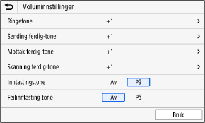 Angi om det skal avgis lyd når du trykker på taster og knapper på kontrollpanelet.