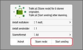 Når du vil skanne flere sider, plasserer du dem på glassplaten og trykker på [Skann neste].