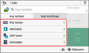 Hvis mottakeren ved sending er begrenset på grunn av godkjenningsinnstillingene for send-funksjonen, kan du ikke angi en annen mottaker. Kontakt administrator hvis du trenger mer informasjon.