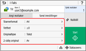Sjekk at mottakeren er korrekt og trykk deretter på [Start skanning].