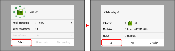 Du kan avbryte sending av en faks ved å følge anvisningene på skjermbildet.