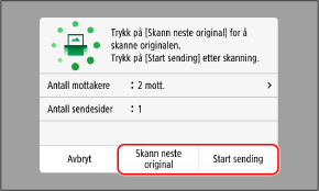 Når du har skannet alle dokumentene, trykker du på [Start sending] eller [Forh.vis og send].