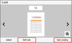 Hvis det er sider du ikke vil sende, kan du åpne siden og trykke på [Slett side].