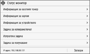 Този екран се показва, когато натиснете [Статус монит.] на екрана [Начало] и други местоположения.