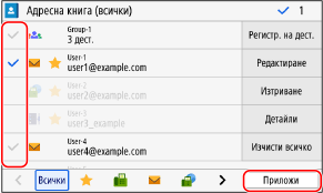Изберете квадратчетата за местоназначения, които трябва да посочите, след което натиснете [Приложи].