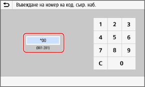 Извежда се екранът [Въвеждане на номер на код. съкр. наб.].