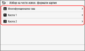 Натиснете [Избор на често използвани формати на хартия].