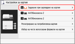 Натиснете [Задаване при зареждане на хартия]. Не е необходимо да изпълнявате стъпка 4.