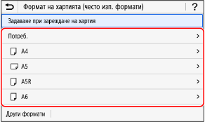 Натиснете [Други формати] и изберете размера на хартията от показания списък.
