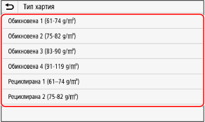 Когато хартията е заредена в многофункционалната тава, екранът за задаване на размера и типа на хартията се показва на контролния панел по подразбиране.