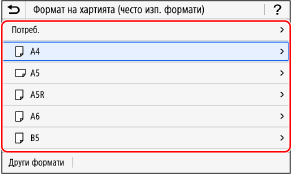 Натиснете [Други формати] и изберете размера на хартията от показания списък.