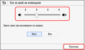 Плъзнете плъзгача наляво или надясно, за да регулирате силата на звука, и натиснете [Приложи].